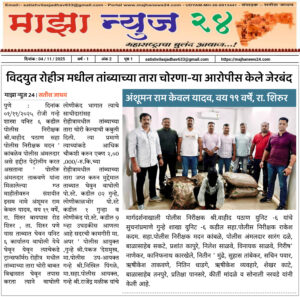 पुणे : दिनांक ०१/११/२०२५ रोजी गन्हे शाखा यनिट ६ कडील पोलीस निरीक्षक श्री.वाहीद पठाण सहा पोलीस निरीक्षक मदन ‘ कांबळेव पोलीस अंमलदार असे हद्दीत पेट्रोलींग करत असताना ‘ पोलीरू अंमलदार ताकवणे यांना मिळालेल्या ग्प्त माहीतीवरुन संशयीत इसम नामे अंशूमन राम केवल यादव, वय १९ वर्षें, रा. शिरुर बायपास रोड शिरुर , ता. शिरुर पणे यास ताब्यात घेवन यनिट ६ कार्यालय वाघोली येथे घेवून येवून त्याचेकडे ट्रान्सफॉर्मर।रोहीत्र मधील तांब्याच्या तारा चोरी बाबत विश्वासात घेवून तपास करता त्याने वाघोली लोणीकंद भागात त्याचे साथीदारांसह रोहीत्रामधील तांब्याच्या तारा चोरी केल्याची कबुली दिली. त्या प्रमाणे त्याच्यांकडे आधिक चौकशी करुन एक्ण २,०0 ,000/-रु.कि.च्या रोहीत्रामधील तांब्याच्या तारा जप्त करुन मुद्देमाल ताब्यात घेवुन वाघोली पो.स्टे. कडील 0२ गुन्हे, लोणीकाळभोर पो.स्टे कडील १ गुन्हा व लोणीकंद पो.स्टे. कडील 9 ग्न्हा उघडकीस आणला आहे