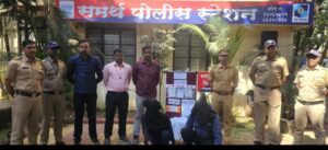 वरिष्ठांच्या आदेशाने दाखल गून्हयातील अज्ञात चोरटयाचा समर्थ पोलीस स्टेशन कडील तपासपथक तसेच गन्हे शाखा समांतर तपास करीत असताना घटनास्थळावरील उपलब्ध सीसीटीव्ही फुटेज तपासन तसेच गोपनिय बातमीदार यांचेकड्न माहीती प्राप्त करुन आरोपी नामे सुनिल मल्हारी तलवारे वय ३८ वर्षें रा.केएसबीचौक अजंठानगर मजिदजवळ आकुर्डी पुणे व विधीसंघर्षीत बालक यास ताब्यात घेवुन त्यांचेकडे दाखल गुन्हयाचे अनुषंगाने तपास ‘केला असता वरीलप्रमाणे गुन्हा केला असल्याचे कब्ल करुन दाखल गन्हयातील चोरी केलेले सोन्याचे दागीणे त्यांचा साथीदार नामे रिवानंद दशरथ मोची याचेकडे विक्री करीता दिले असल्याची माहीती दिले वरुन नामे शिवानंद दशरथ मोची याचा पिंपरी चिंचवड परीसरात शोध घेवुन त्यास ताब्यात घेवुन आरोपी सुनिल मल्हारी तलवारे वय ३८ वर्ष रा.केएसबी चौक अजंठानगर मजिदजवळ आकर्डी पूणे व शिवानंद दशरथ मोची उर्फ मोची मामा वय 40वर्षे, रा.भिमशक्तीनगर , मोरेवस्ती, चिखली, ता.हवेली, जि.पुणे यांना दाखल गुन्हयात अटक करुन त्यांचेकडे सखोल तपास करुन आरोपी ‘व विधीसंघर्षीत बालक यांचेकड्न दाखल गून्हयातील चोरी केलेले सोन्याचे व चांदीचे दागीणे तसेच 10,000 रुपये रोख रक्कम असा एक्ण 8,11,000 रु.किं.चा मुद्देमाल जप्त करण्यात आला. सदर आरोपीतांकडे केलेल्या तपासामध्ये त्यांनी खराडी पोलीस स्टेशन. चंदनगर पोलीस स्टेशन व महाड शहर पोलीस स्टेशन जि.रायगड हद्दीत देखील घरफोडीचे गुन्हे केले असल्याचे तपासात निष्पन्न झाले आहे.